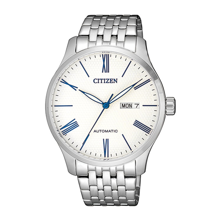 WHITE DIAL WITH BLUE ROMAN INDEXES