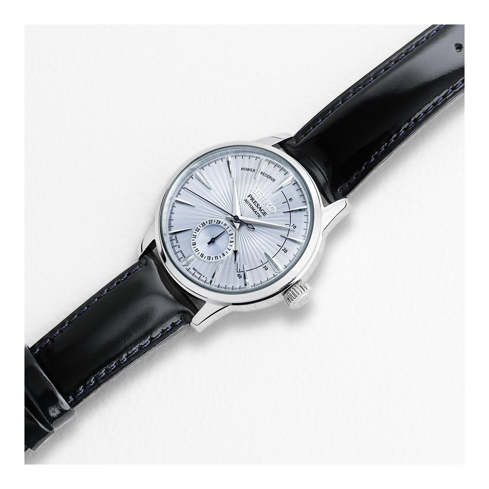 دستهبندی: ساعت مردانهجنس کیس: Stainless Steelجنس بند: Cow Leatherجنس شیشه: Box-Shaped Hardlexموومنت: Mechanical (Automatic with manual winding)کالیبر : 4R57سایز کیس : 40.5mmپاور رزرو : Approx 41 Hoursضمانت : 2 Yearsرنگ صفحه : Light Blue Sunray Dialمقاومت در برابر آب : 5 Barنشانگرهای روی صفحه : Date Hand & Power Reserve Indicatorنمایش بیشتر